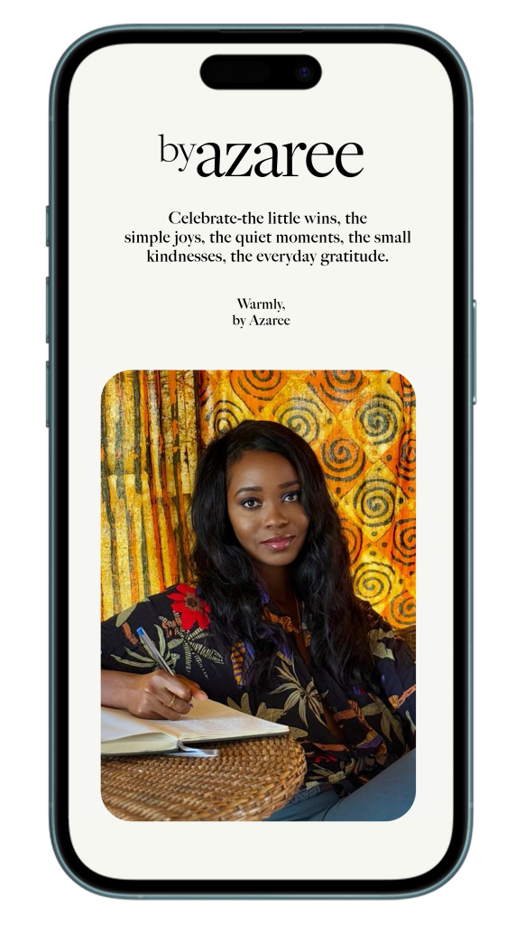 An award-winning, 30-second daily newsletter with original essays, soothing playlists, nourishing recipes, non-toxic product reviews, and more – from Azaree.